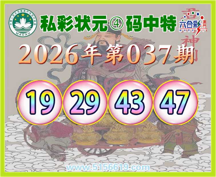 037期: 🍒《私彩状元》 🍒④码中特🍒【19.29.43.47】开:43准上榜高手